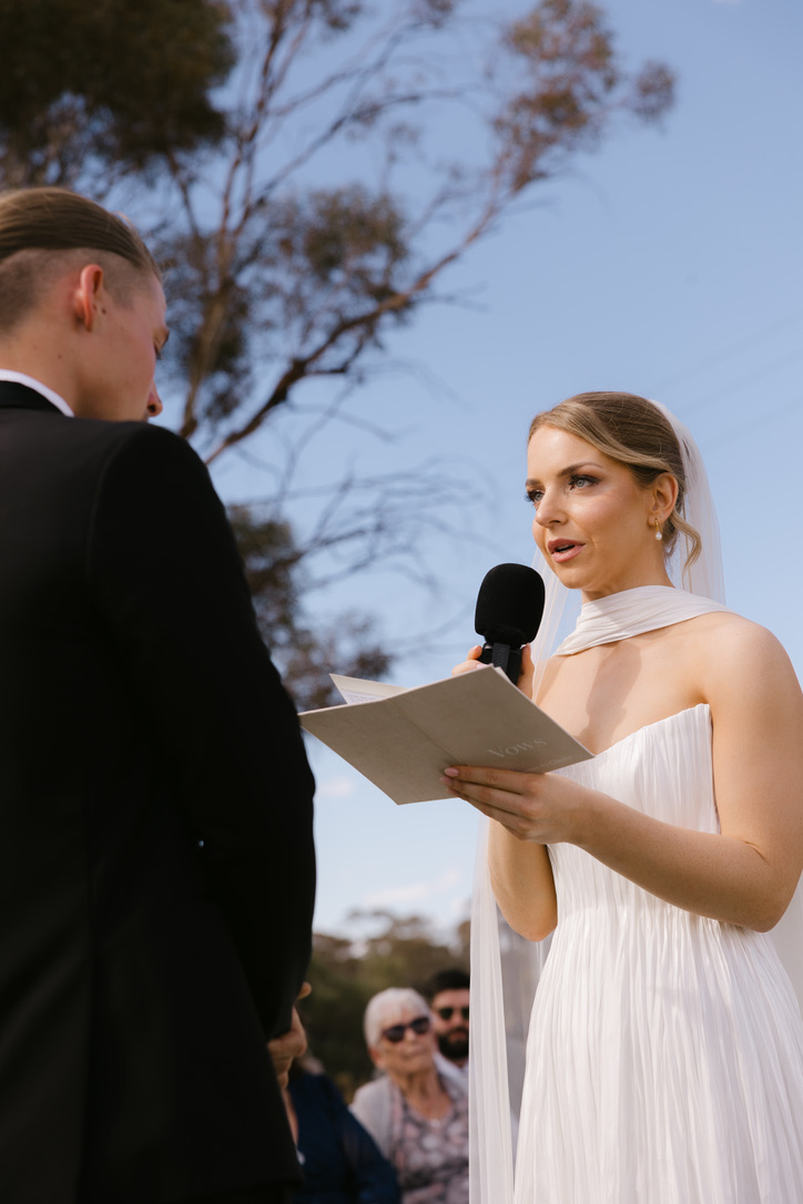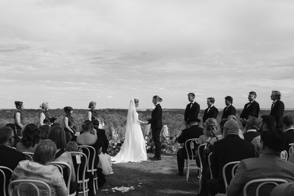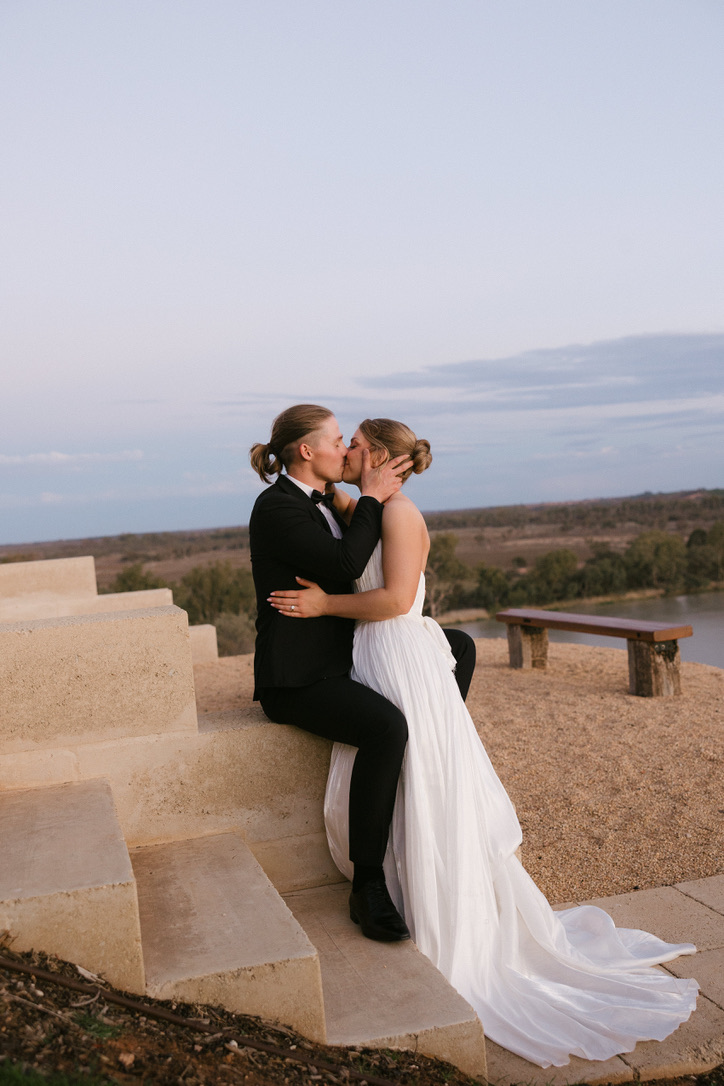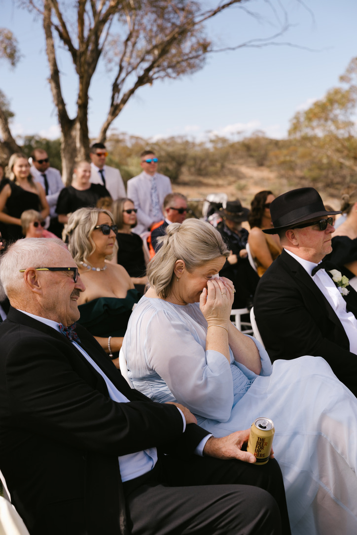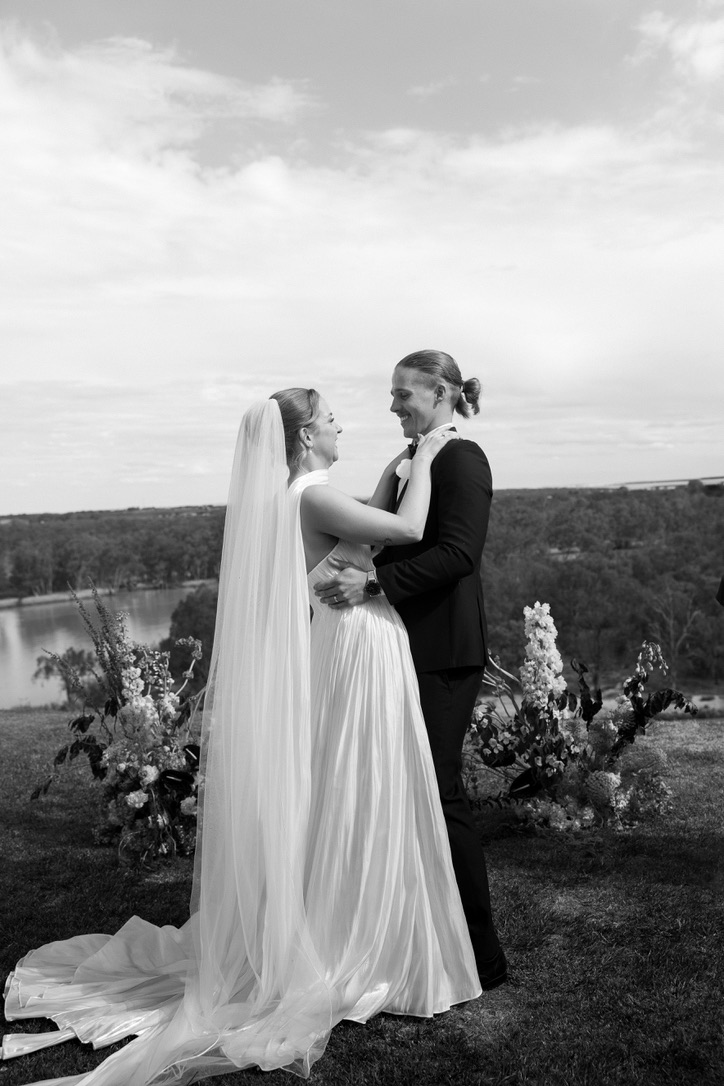 Their ceremony overlooked the wide Riverland valley, framed by soft light and a gentle breeze that played with Sophie’s veil at exactly the right moments. Family gathered close, and her mother’s tears were impossible to miss as Sophie spoke her vows. It was not a performance, but an honest, heart-led moment, the kind that lingers long after the day is over.