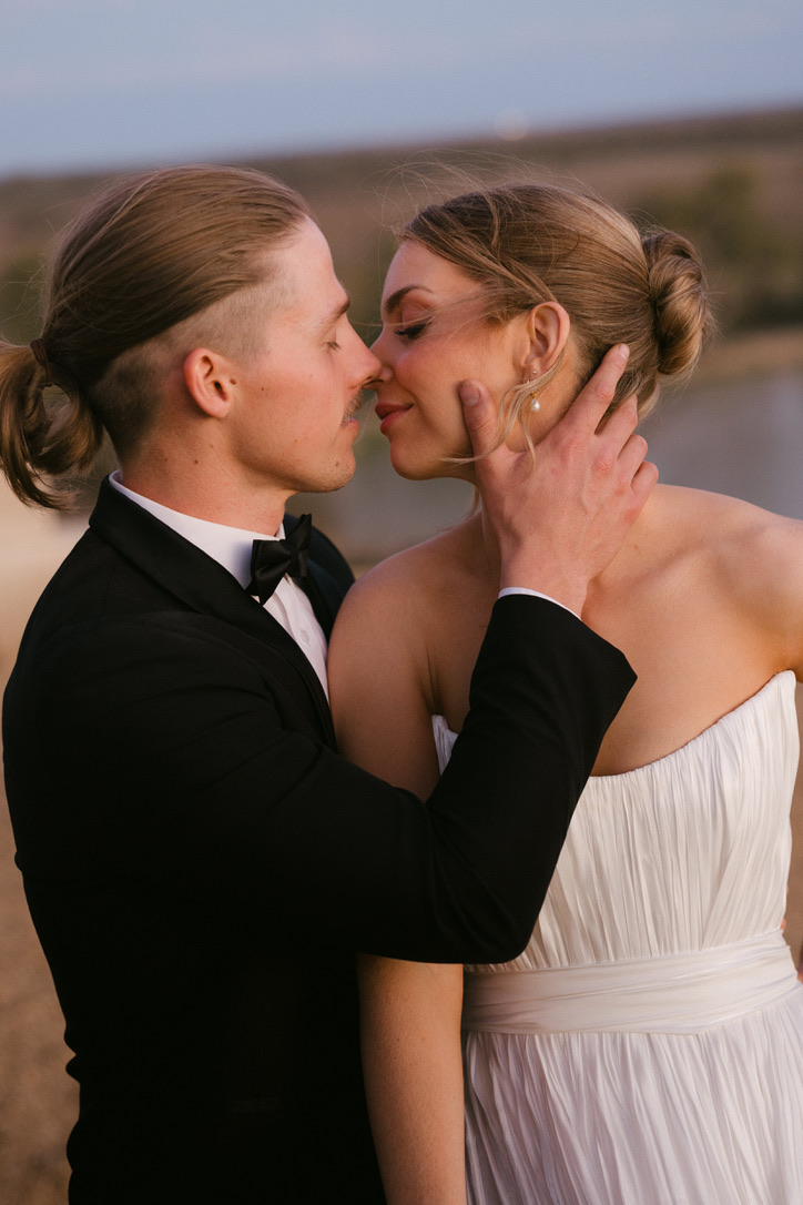 As the sun began to drop, we wandered into the warm, painterly landscape for portraits. The River Vista has a particular way of catching light–soft, directional, and golden. Sophie moved through it with an elegance that felt effortless. These portraits were less about posing and more about presence; the two of them settling into their first quiet moments of being married.