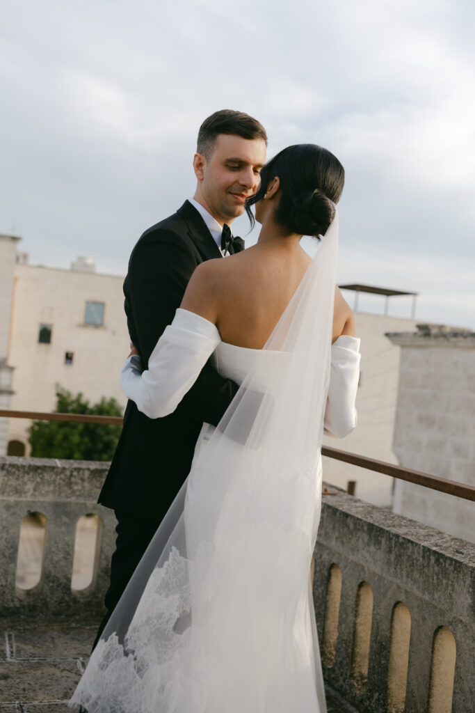 He proposed in Mexico. They married in Italy. Their relationship — much like their wedding at Masseria Amastuola in Puglia — feels expansive and deeply intentional, a series of places and moments quietly threaded together by love.