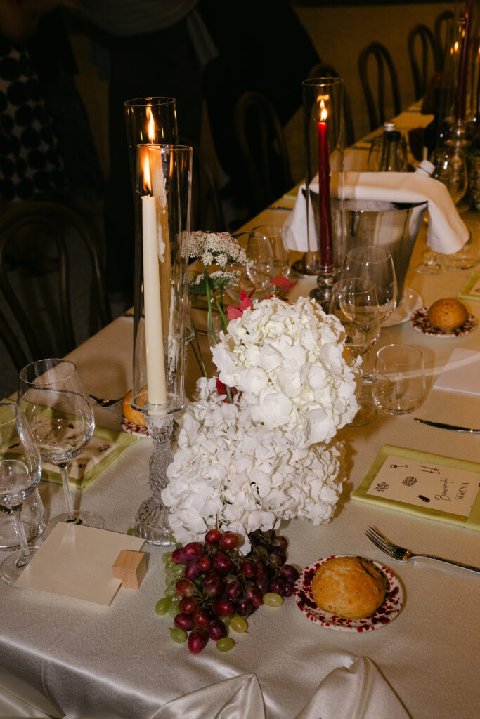 The details were playful and modern: citrus, peppers, fresh pears, and textured vessels that nodded to local produce and Italian still-life.