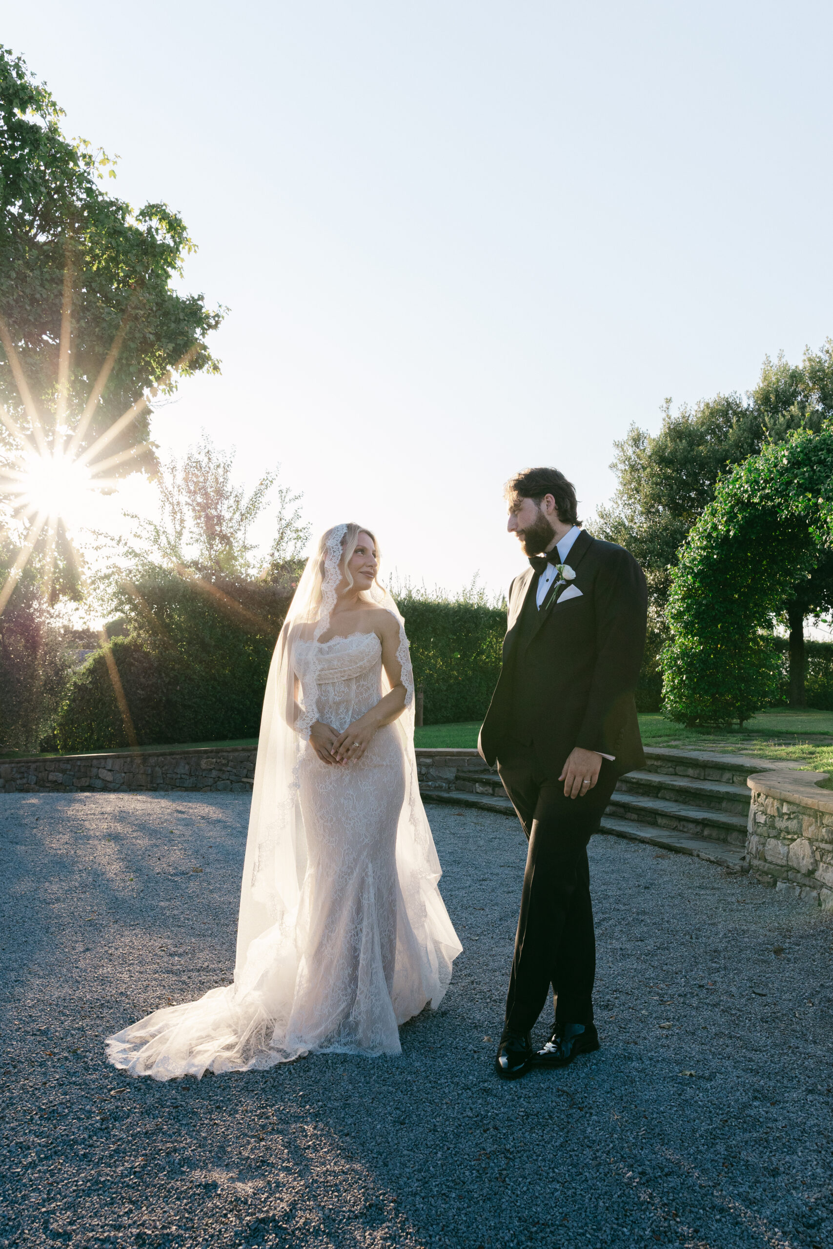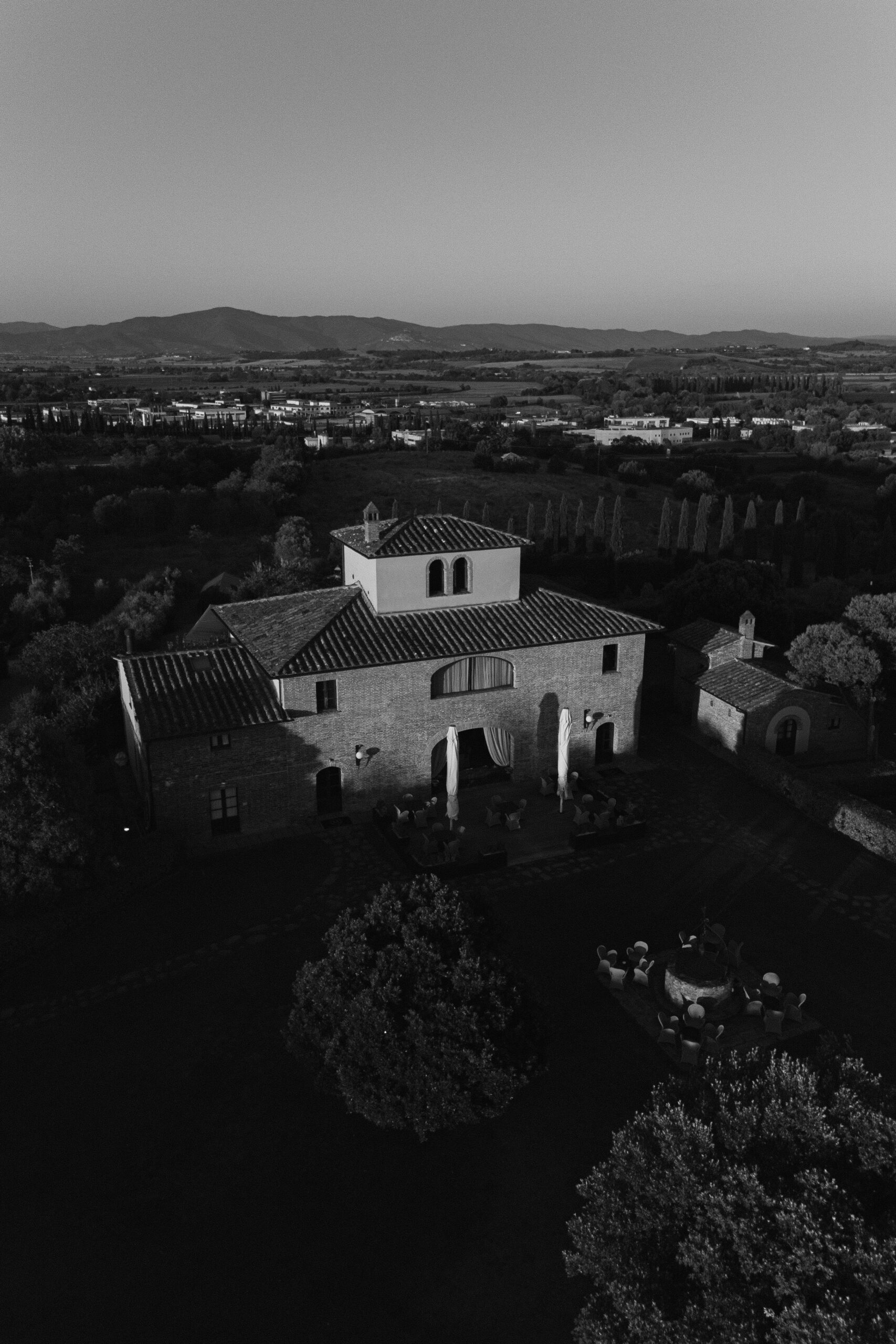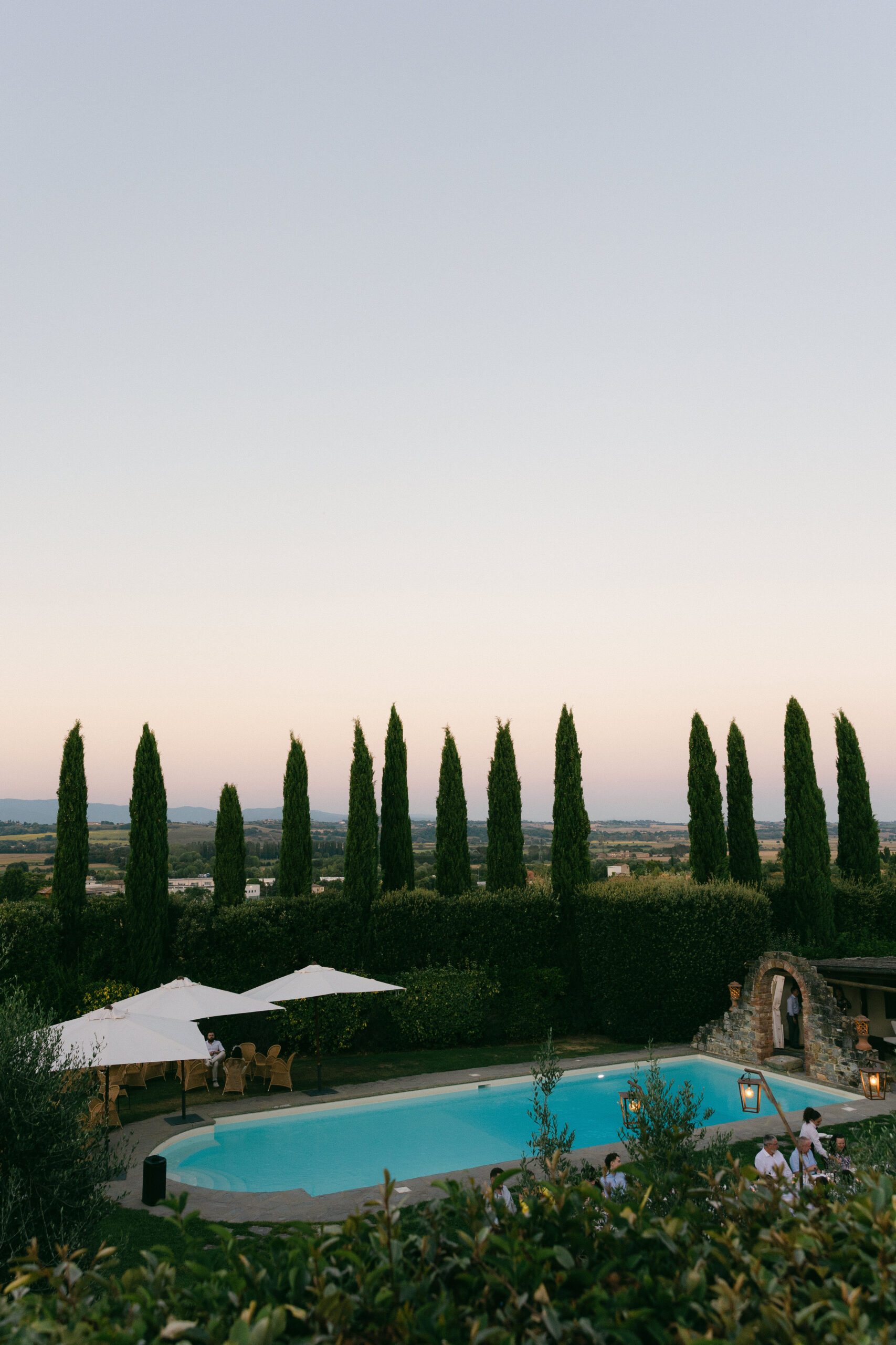 Set amongst the gently folding hills of Sinalunga, this eighteenth-century Tuscan estate feels suspended between centuries — terracotta stone warmed by the afternoon sun, cypress spires catching the last of the light, and an endless horizon that glows gold right through to dusk. It’s the kind of place where time stretches, where summer evenings linger, and where a wedding becomes less of an event and more of an atmosphere.